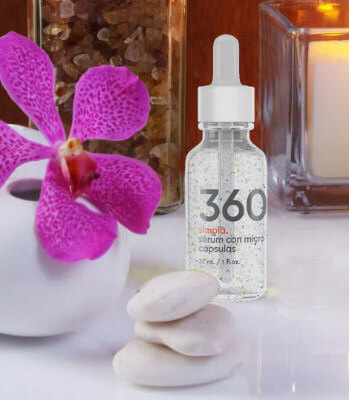 La serum Simpla 360 estimula la producción natural de colágeno, alisa las arrugas, restaura la elasticidad de la piel y tensa el óvalo facial.